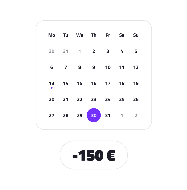 Avec DeluPay, vous avez le choix d’être débité immédiatement ou à la fin du mois sans aucun frais.